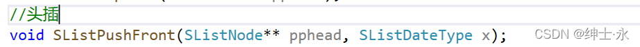 //头插 void SListPushFront(SListNode** pphead, SListDateType x) { //创建结点 SListNode* newnode = BuySListNode(x); newnode->Next = *pphead; *pphead = newnode; }