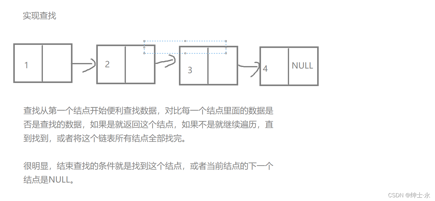 SListNode* SListFind(SListNode* phead, SListDateType x) { assert(phead); SListNode* cur = phead; while (cur) { if (cur->date == x) { return cur; } cur = cur->Next; } return NULL; }