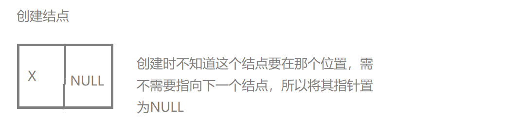 //创建一个结点 static SListNode* BuySListNode(SListDateType x) { SListNode* NewNode = (SListNode*)malloc(sizeof(SListNode)); if (NewNode == NULL) { printf("开辟空间失败\n"); exit(-1); } NewNode->date = x; NewNode->Next = NULL; return NewNode; }