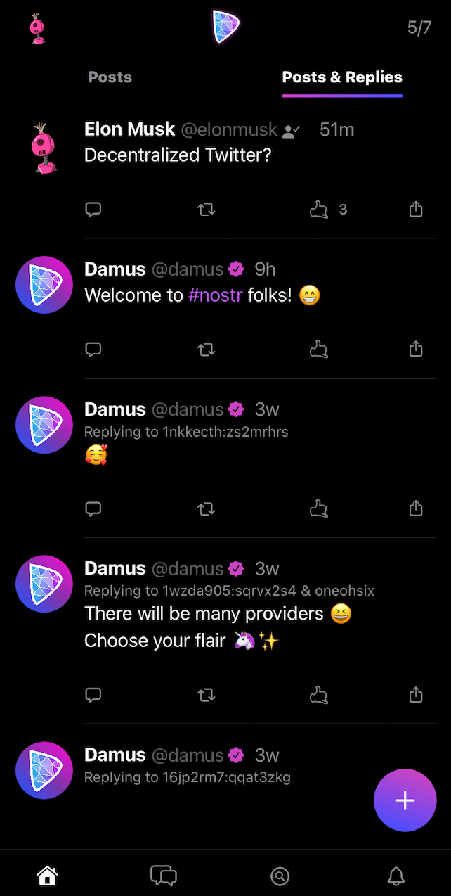 去中心化,用户自己保存自己的信息,加上有着接近 Twitter 的易用性,让 Nostr 在其 iOS 客户端 Damus 上线的第一天就获得了极高的关注。