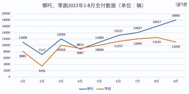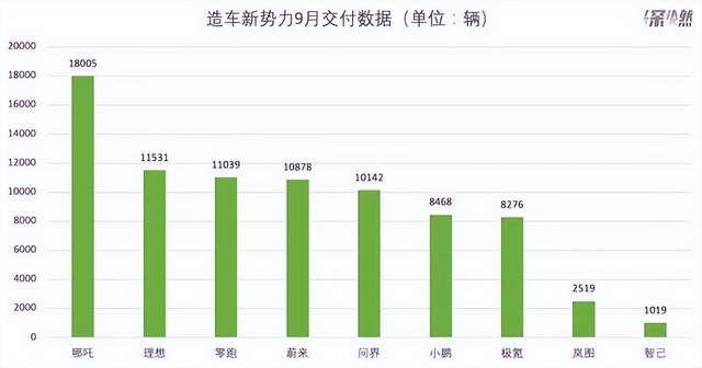哪吒9月交付18005辆新车,再次交出史上最好成绩,蝉联销冠,理想靠着L9重新回归“破万”阵营,11531台的交付量位居榜单第二,紧接着是零跑,交付了11039辆,位列第三。