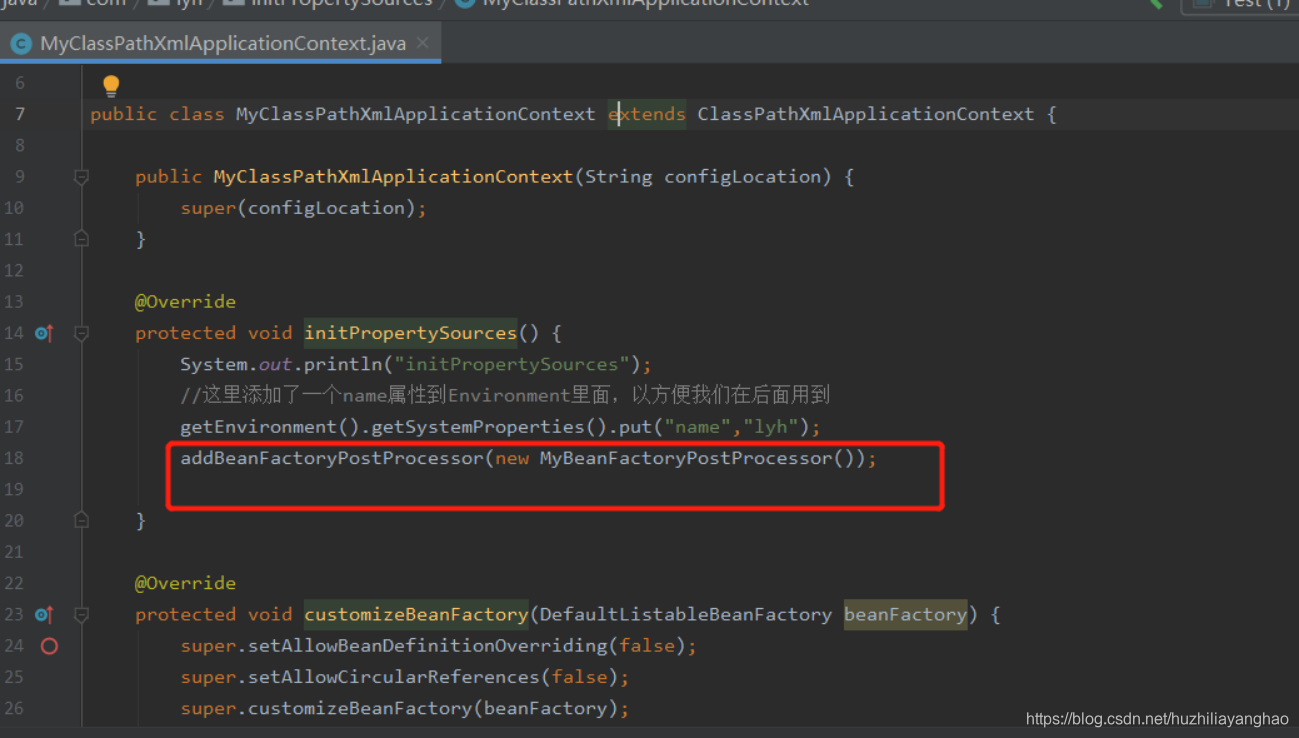或者在initPropertySources方法中添加:addBeanFactoryPostProcessor(new MyBeanFactoryPostProcessor());