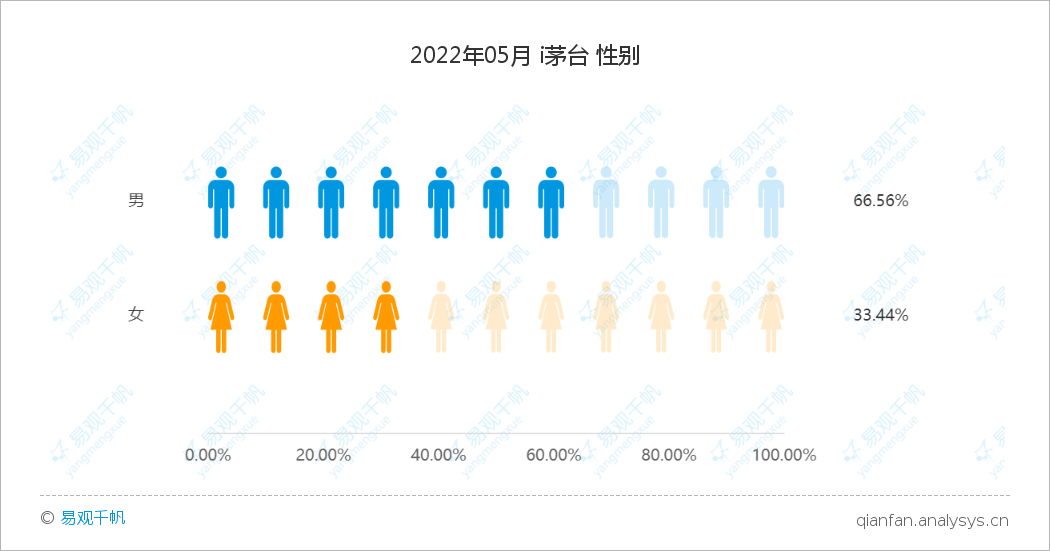 从性别分布来看,尽管男性用户仍是“i茅台”的主力客群,但女性用户占比由上线之初的17.7%上升至33.44%,占比提升明显。