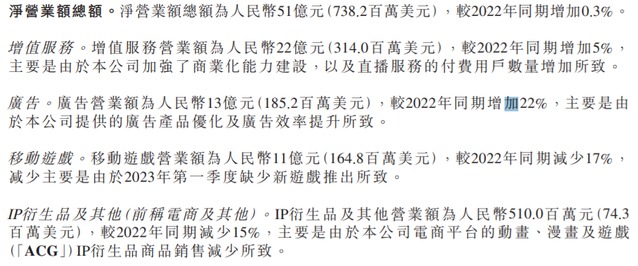 继2022年第四季度移动游戏营收达到1.65亿美元,同比下降12%之后,B站再一次在移动游戏业务上营收下滑。