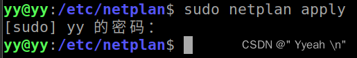 5. 重启网卡:输入命令 sudo netplan apply 。
