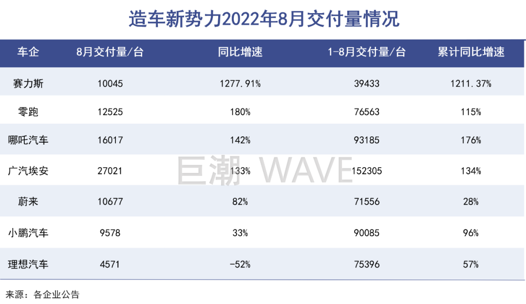 从8月份公布的销售数据来看,“蔚小理”全部跌出前三,华为加持的赛力斯马力全开,8月交付量首次突破万辆,同比暴增近13倍;