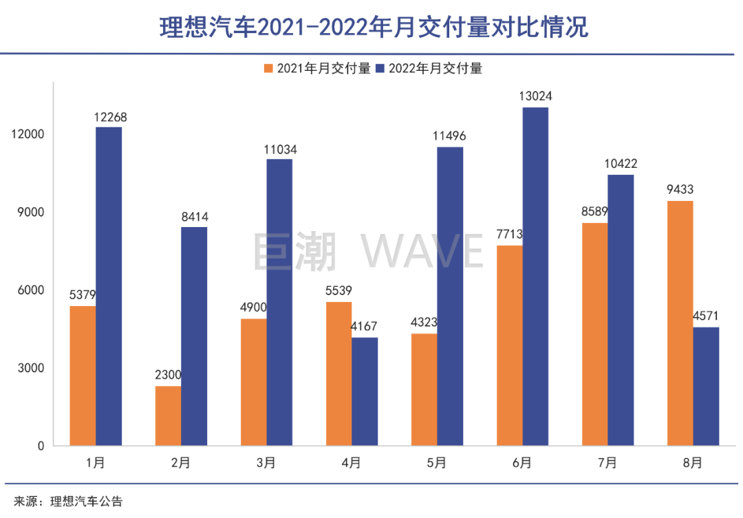 比起今年巅峰时期单月超1.3万台的交付量,这个数字直接跌去了约三分之二。而且,理想汽车还是8月份唯一一家同比负增长的新能源车企。这对于曾经的新势力明星来说有些难看。