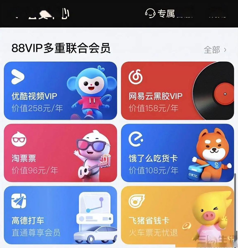 自88VIP 在2018年8月推出以来,除了淘宝和天猫的购物优惠之外,其权益主要来自阿里旗下核心业务的会员联动,比如同时享受优酷、虾米、淘票票等多平台的会员年卡服务。