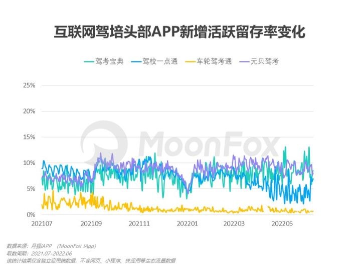 除了基本的驾培业务,平台的主要收入来源于广告。但月狐iAPP数据显示,过去一年在线驾考类APP的30日活跃留存普遍处于10%以下的较低水平,就连行业龙头的驾考宝典,2022年上半年MAU的峰值为3月的2058万,较四年前的同期降幅接近40%。