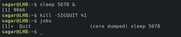 SIGQUIT 类似于 SIGINT,但它也会在执行前生成一个核心转储(core dump)。