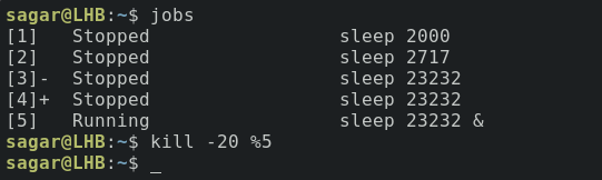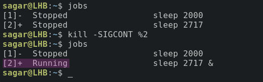 上面的例子中,我们使用了 jobs 命令,这是一个很有用的工具,可以显示正在运行和最近终止的进程。
