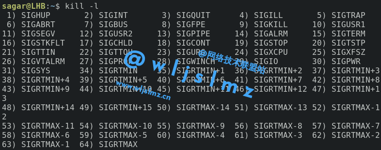 我们通常使用 kill 命令来终止进程,kill 命令可用的信号超过 50 个: