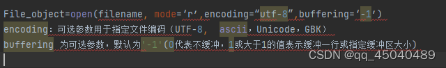 encoding:用于指定文件编码(UTF-8, ascii,Unicode,GBK)