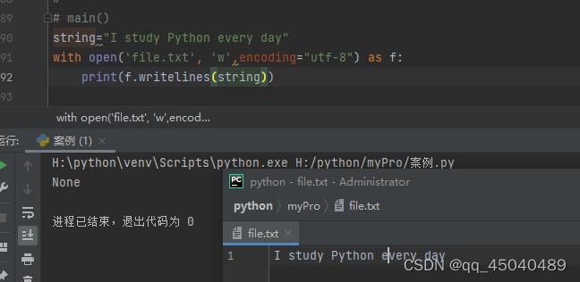 语法格式:writelines(lines) 参数lines表示要写入的数据