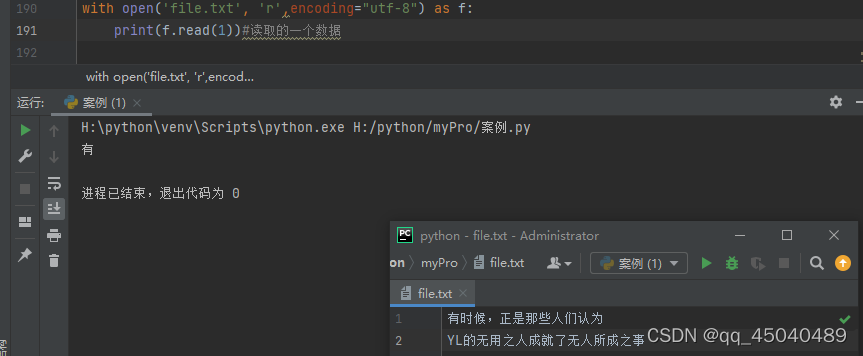 注: read() 和 redlins()两种可以一次全部读取数据 但数据过大 会造成计算机内存耗尽 不够安全对大型数据
