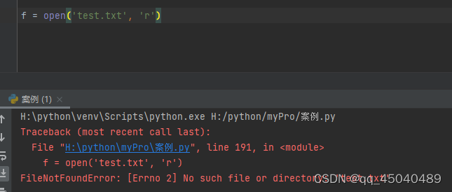 如果文件不存在,open()函数就会抛出一个IOError的错误,并且给出错误码和详细的信息告诉你文件不存
