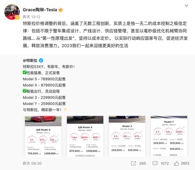 新能源汽车的成本卷王特斯拉又降价了,在2023年开年,送给国产新势力品牌一记暴击。