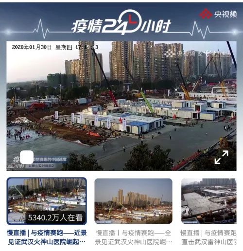 转折点出现在2020年。彼时国内受到疫情影响,线上内容爆发,而央视频的《疫情24小时》更是把慢直播拉到快车道上,火神山、雷神山医院施工现场的24小时直播火爆,不少网友摇身一变成为“包工头”,在直播的117天里,累计在线直播超过了6000小时,观看量接近2亿人次。慢直播就这样闯入人们的视野,在抗击疫情的大背景下,宏大的主题成为了这个时期慢直播的特点,农村云养殖、城市云旅游等一系列慢直播内容迅速崛起,缓慢的节奏和轻松的画风缓解了疫情带来的焦虑,慢直播迎来了黄金发展时期。