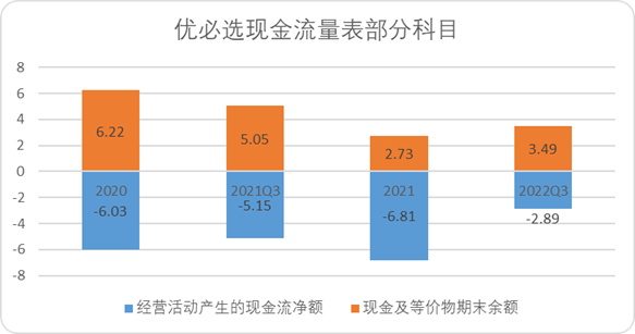 图:优必选现金流量表部分科目,来源:Choice金融客户端