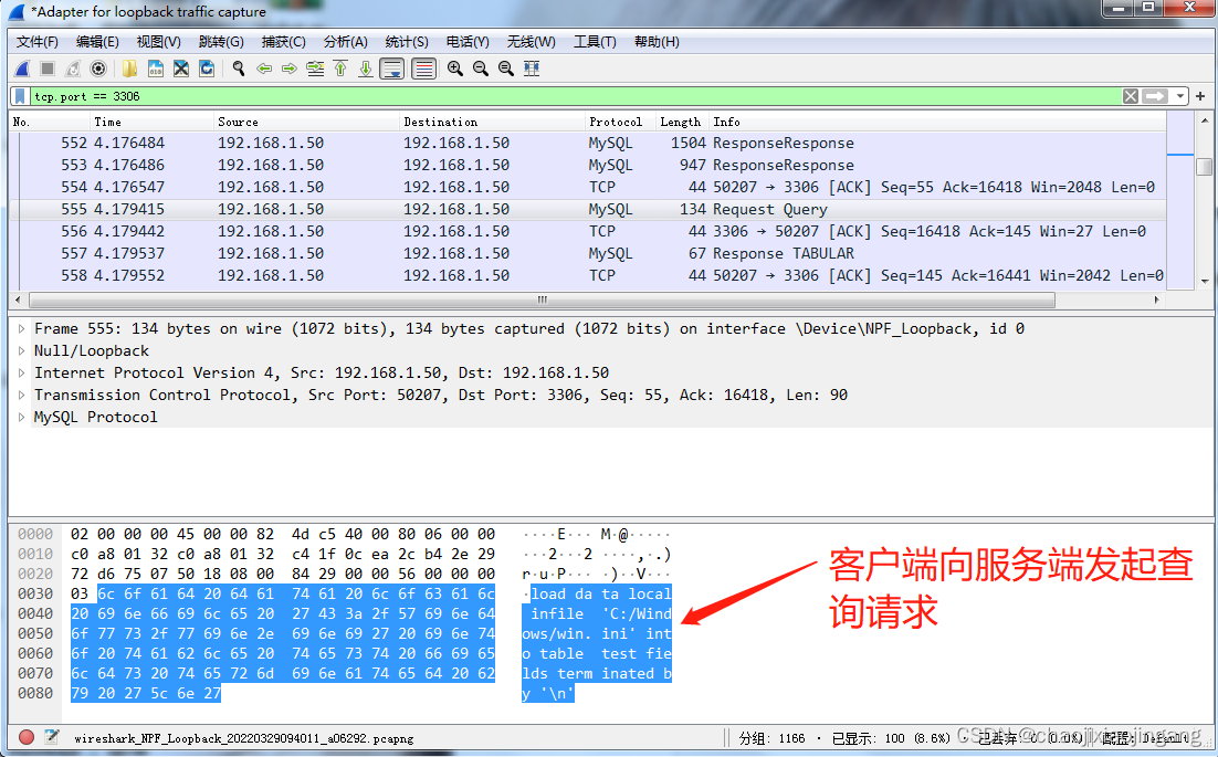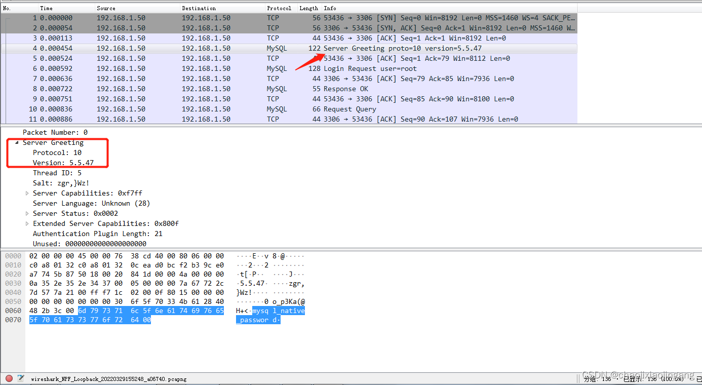 PS:在本机上启动服务端与客户端,启动wireshark 抓包,要选择回环接口:Adapter for lookback traffic capture ,如果选择本地连接,会抓不到流量包。