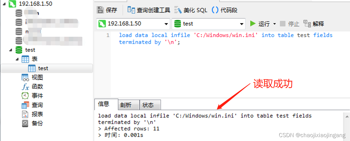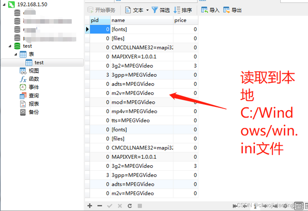 MySQL中有个local data local infile函数能够读取本地文件到MySQL数据库中。