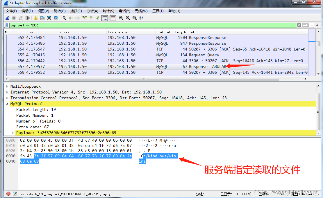 从上面交互过程可以看出,在Client向Server发起查询后,Server会返回一个Response TABULAR的响应包。而如果在这个数据包中指定文件路径,就可以读取Client相应的文件。实际上Server可以在回复任何Client端的请求时返回Response TABULAR响应包,而不仅仅是在Client发起Load data local infile后。