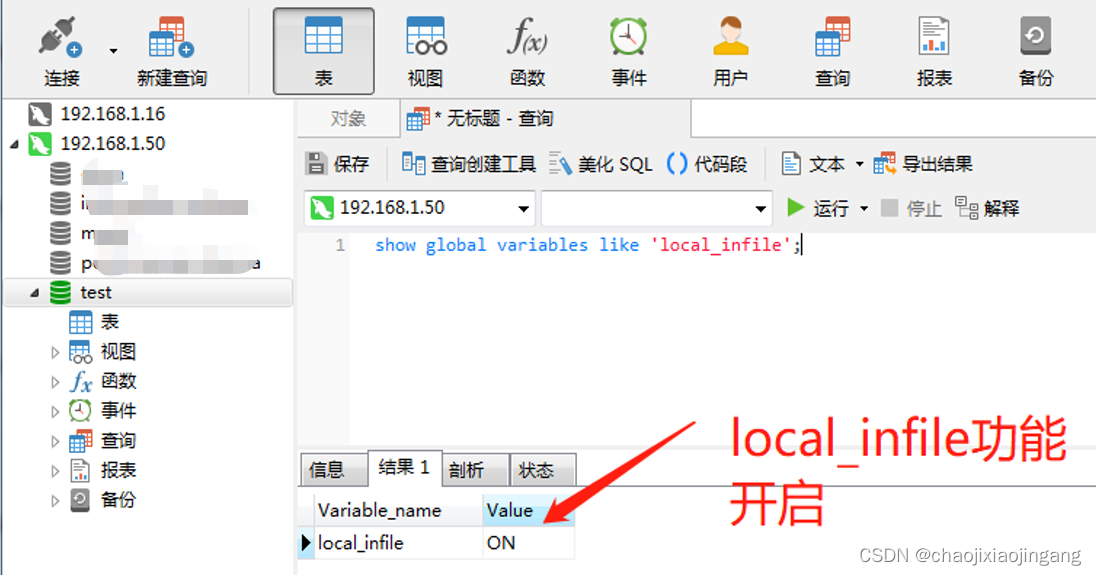 Local data infile语句用于高速地从一个文本中读取行,并写入一个表中。文件名称必须为一个文字字符串。Local data infile是select…into outfile地相对语句。把表的数据被分到文件中使用select…into outfile,从备份文件回复表数据,使用load data infile。