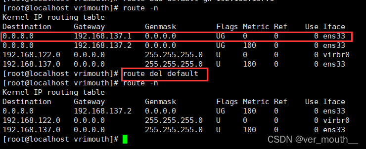 当目标网段为"default"时,表示此行是默认网关记录:当下一跳为""gateway"时,表示目标网段是与本机直接相连的。但是,直接执行"route"命令无法直接看出默认网关地址