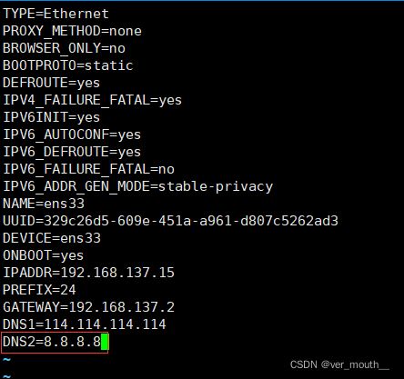 第二种方法:vim /etc/sysconfig/network-scripts/ifcfg-ens33