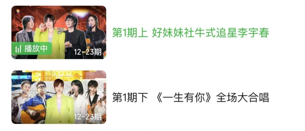 唱歌的片段被快剪,只唱几句就轮到了下一位,还要抽空拍第二现场的互动,试图营造一些在其他节目尝到甜头的人与人之间的故事感。