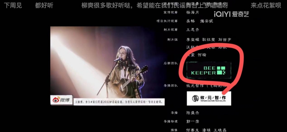 因此,也有不少豆瓣观众提出希望由米未来进行节目制作。但拉到节目片尾,《民谣》的后期制作确实是由米未旗下后期厂牌BEEKEEPER养丰人负责。