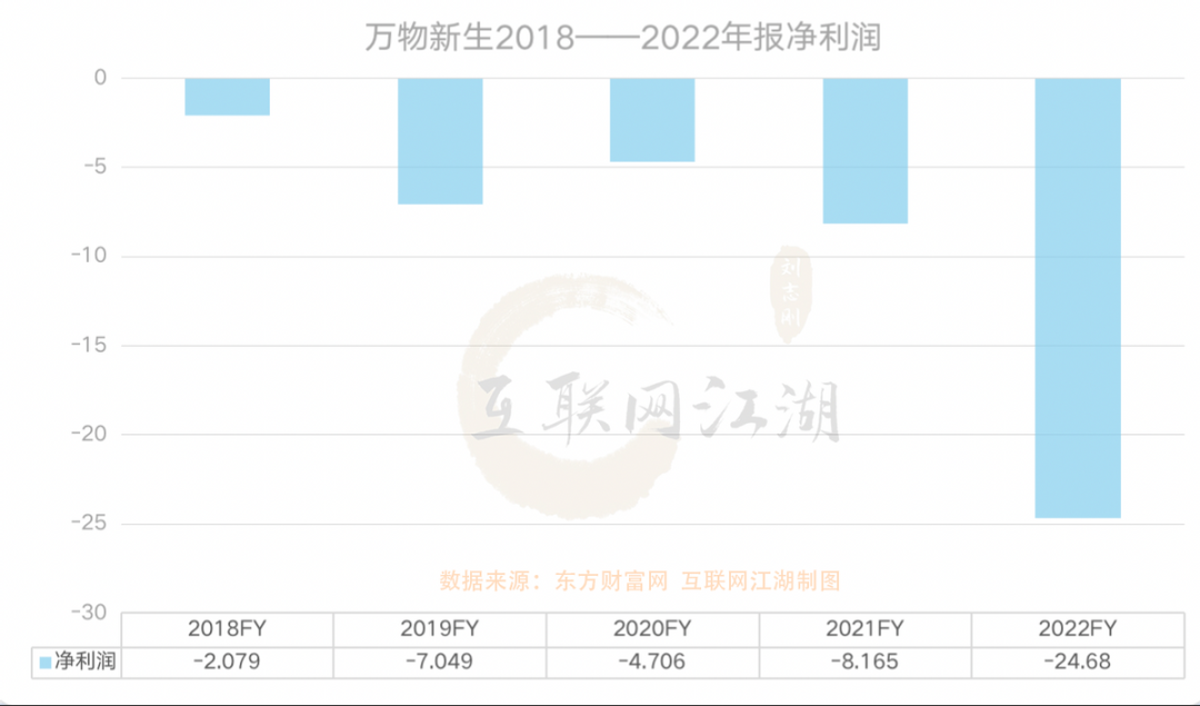 财报显示,2022年万物新生营收98.69亿(单位:人民币。下同),同比增长26.85%,归属母公司股东的净利润-24.68亿,同比亏损有所扩大。数据显示,2021年归母利润为-8.165亿。