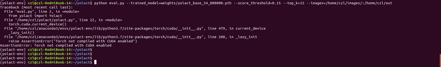 python eval.py --trained_model=weights/yolact_base_54_800000.pth --score_threshold=0.15 --top_k=15 --images=/home/czl/images/:/home/czl/out