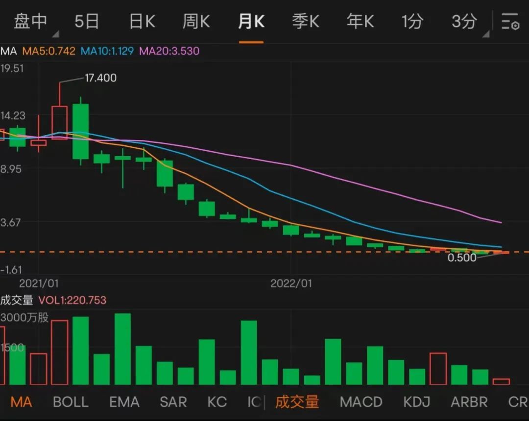 因股价长期萎靡,2022年7月,新氧还收到了纳斯达克发出的退市警示函,因公司的股票连续30个交易日收盘价低于1美元/股,获得180天的合规期,以重新符合纳斯达克上市规则。