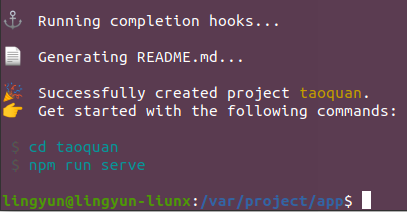 第四部: 如果出现⬇️提示定位路径的命令指示说明项目已经创建OK了