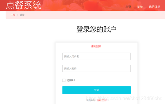 1、项目运行展示首页,将页面搭建起来(必须要先登录才可以进点餐系统首页)。