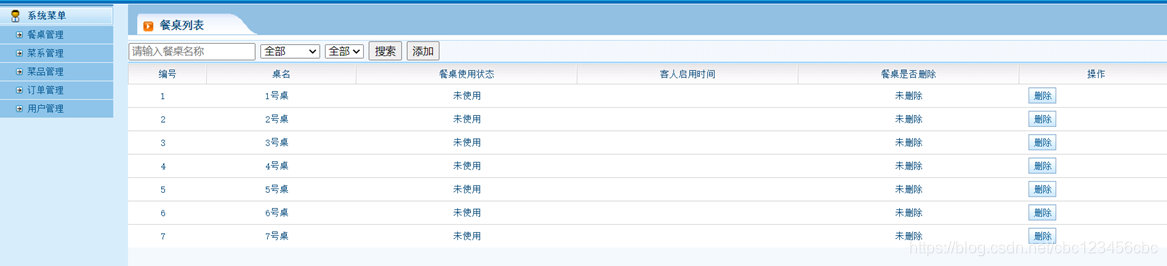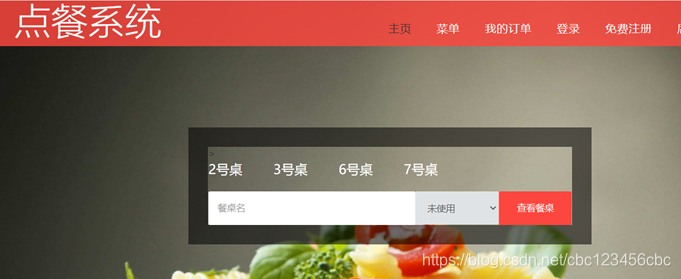 1、项目运行展示首页,自动查询目前未使用的餐桌