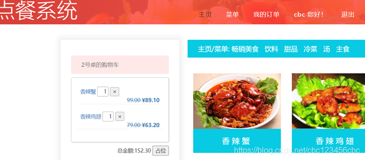 2.2 点击餐桌名称,进入菜单页面占位——加入商品到购物车——下单