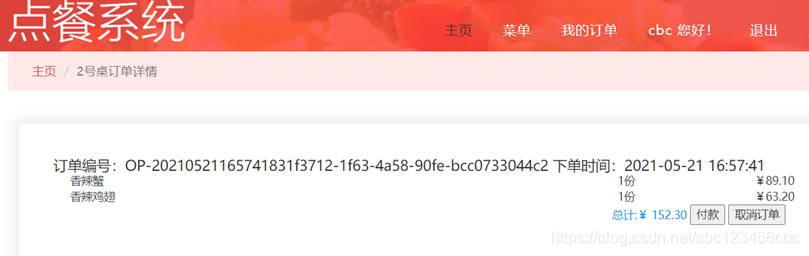 3.5 付款——下单后可取消订单或付款,同时餐桌的状态改为未使用
