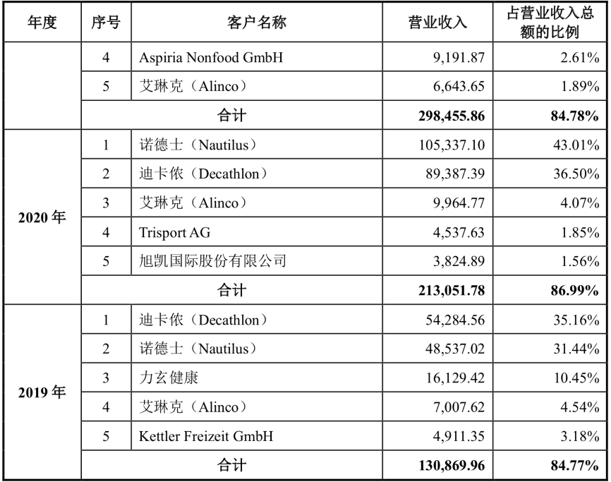 对此,力玄运动表示,目前已上市/拟上市且从事家用/商用健身器材生产制造为主的企业包括英派斯、三柏硕、康力源、力山等,其客户集中度较高且具有行业普遍性。