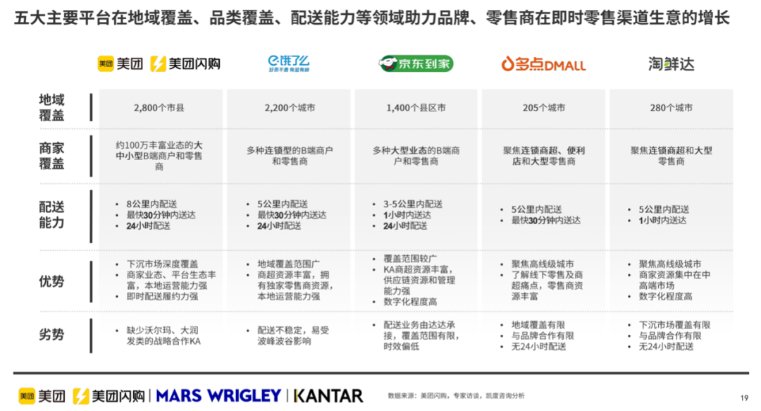 另外,由于疫情的突然出现,则让线下零售商不得不依托电商平台的同城履约服务获得增长,线下线上加速融合,以京东到家/小时购和美团闪购为代表的即时零售“到家平台”获得快速发展。
