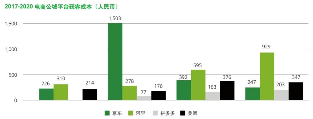 京东、阿里、拼多多和美团四大电商平台数据显示,传统电商平台的用户获取与留存成本逐年上涨。