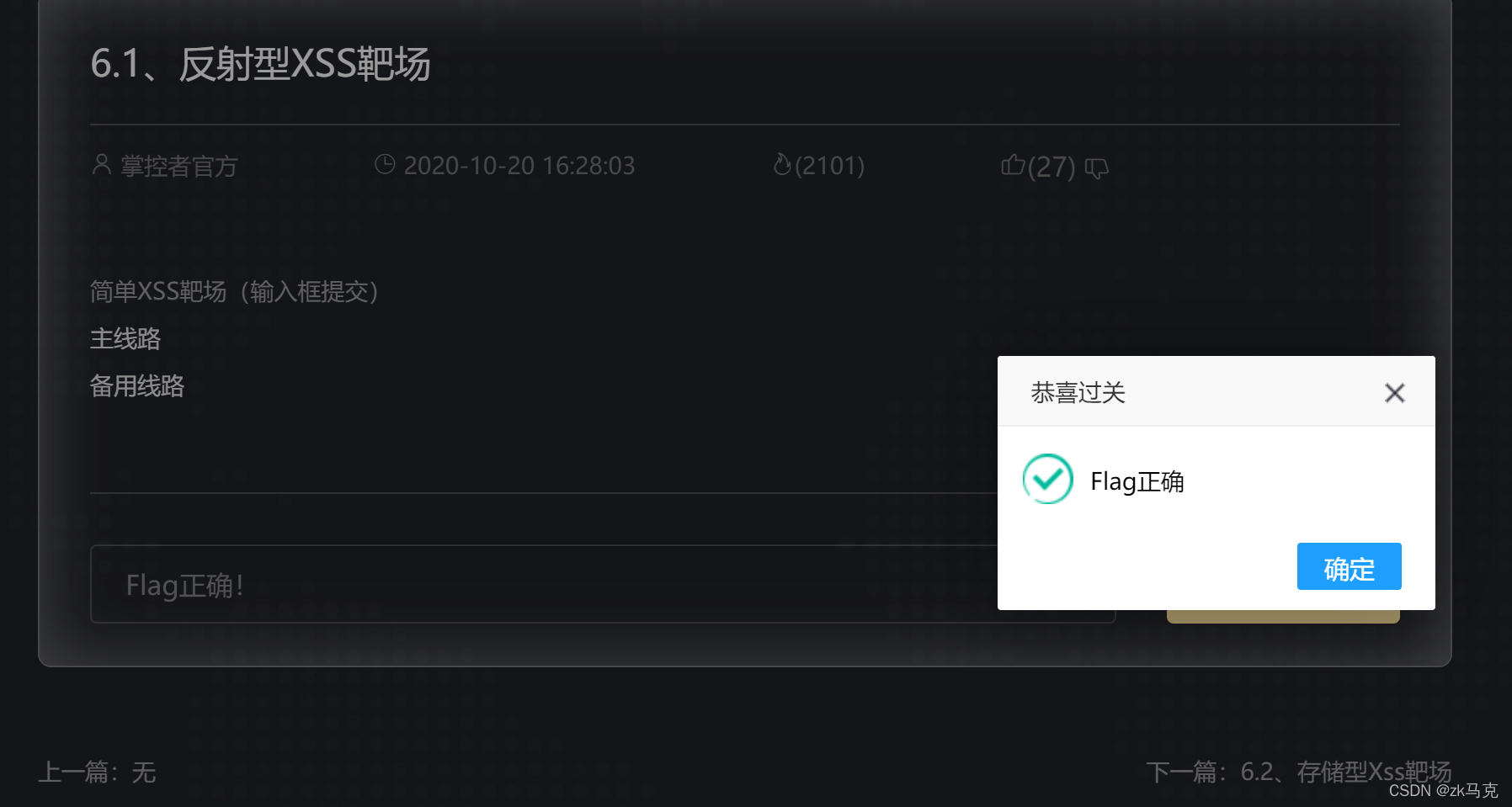 反射型:你提交的数据成功的实现了XSS,但是仅仅是对你这次访问产生了影响,是非持久型攻击
