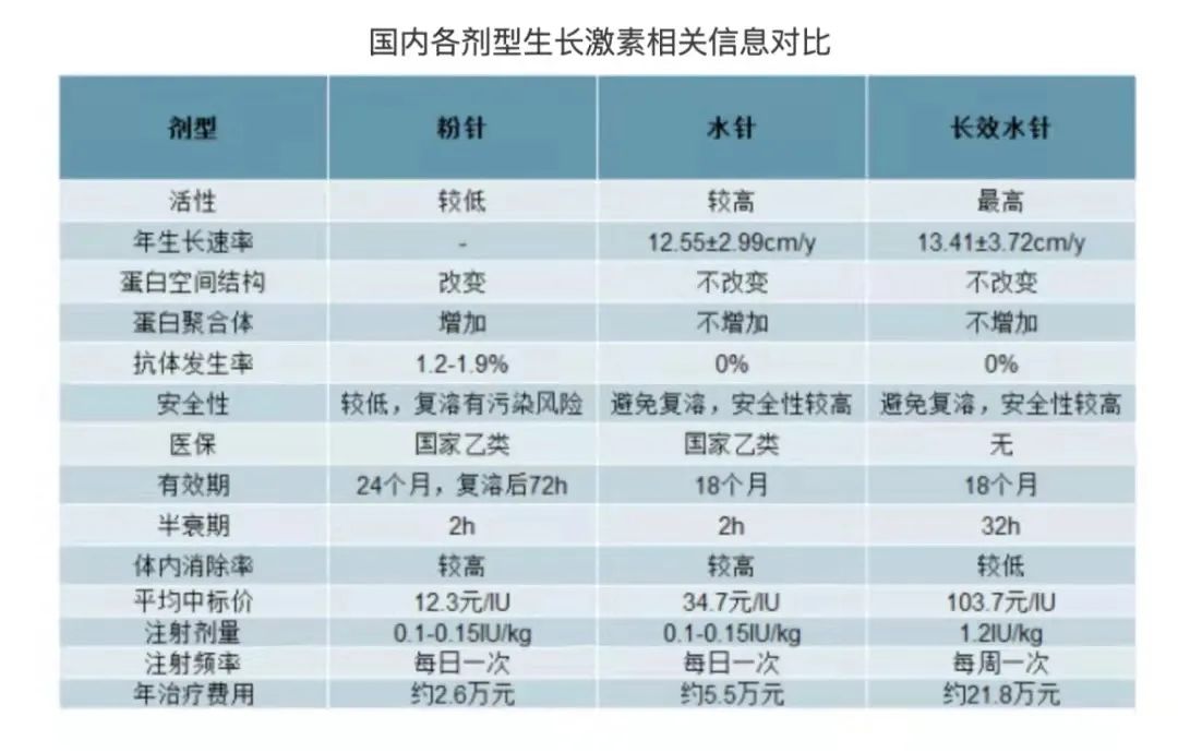 所谓“增高针”,其实就是生长激素,市面上分为粉剂和水剂,水剂又分为长效水剂(一周打一次)和短效水剂(每天一次)。这些针剂售价不菲,一年的费用在5-20万元之间,即便如此,家长们依然前赴后继。