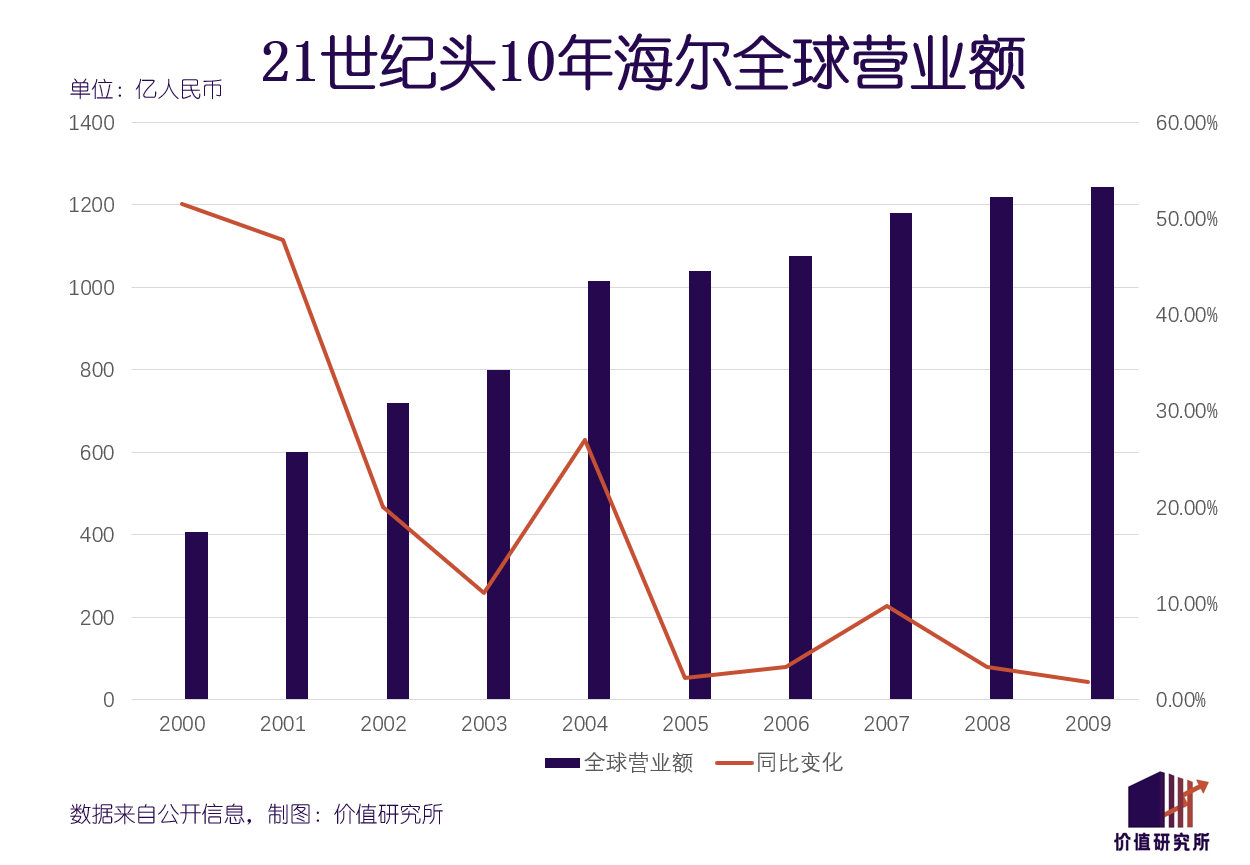 在新世纪的头五年,张瑞敏亲自带队海尔国际化部门,在海外接连建立起了10家工厂、17家营销中心和9个研发基地,建立了完整的研发-制造-销售三位一体业务体系。自此,海尔开启了中国家电制霸海外的先河。根据欧睿国际的统计,截止2021年,海尔连续13年蝉联全球大型家电零售榜首位。