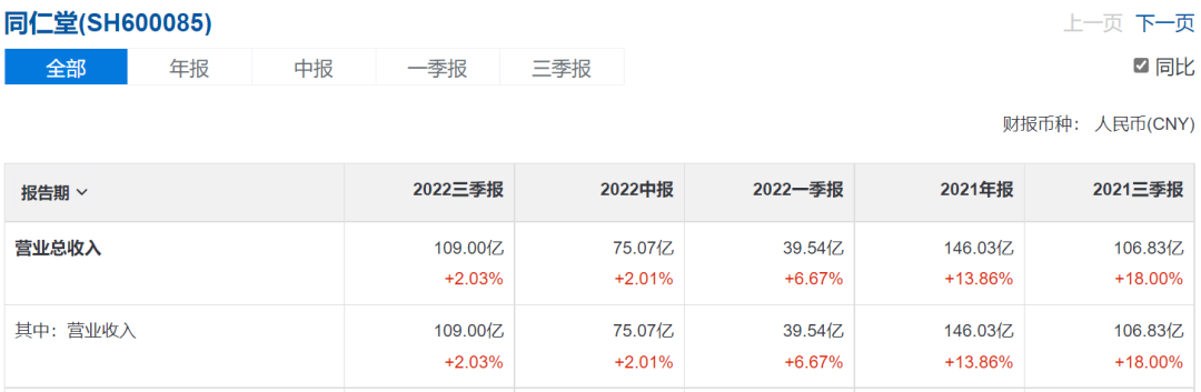 尽管同仁堂在前三季度营收达109亿,同比微增2.03%,但拉长时间线来看,增长势头早已显现出颓态。