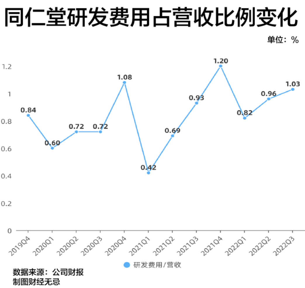近年来,同仁堂研发费用占总收入的比重在1%左右,而片仔癀在2%-3%,