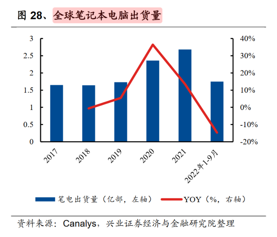 展望2023年,供应链业内人士表示,笔记本电脑出货量将会有个位数的成长或衰退。