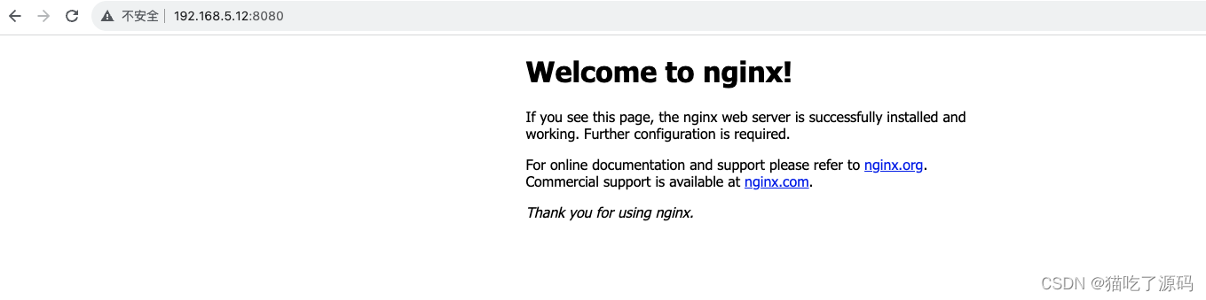 浏览器输入主机IP:端口访问nginx首页,本机为http://192.168.5.12:8080/