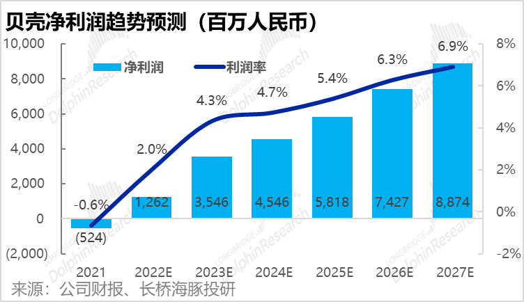 基于以上判断和管理层近期的指引,海豚对贝壳未来的业绩表现做出了以下假设: